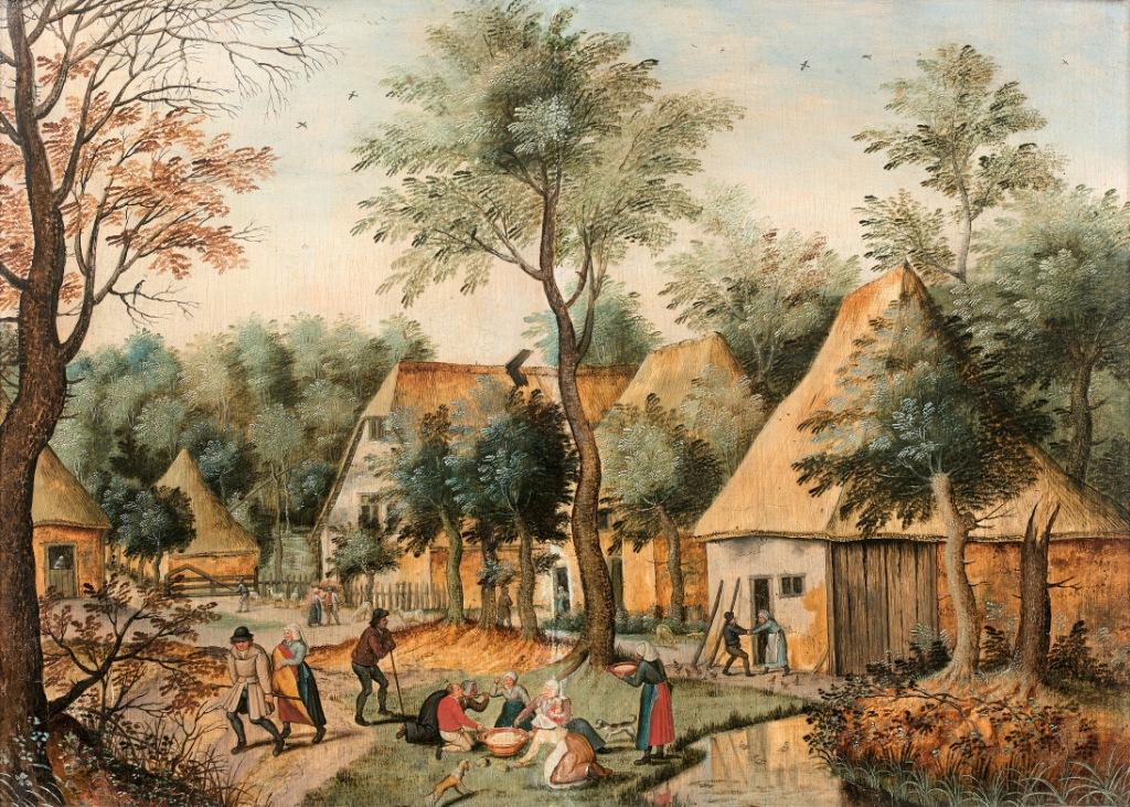 BRUEGHEL Pieter le Jeune (Bruxelles 1564 – Anvers 1637-38) « Mahlzeit der Bauern im Freien » « Repas de Paysans en plein air » Huile sur panneau de bois