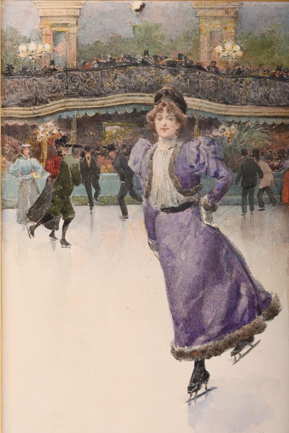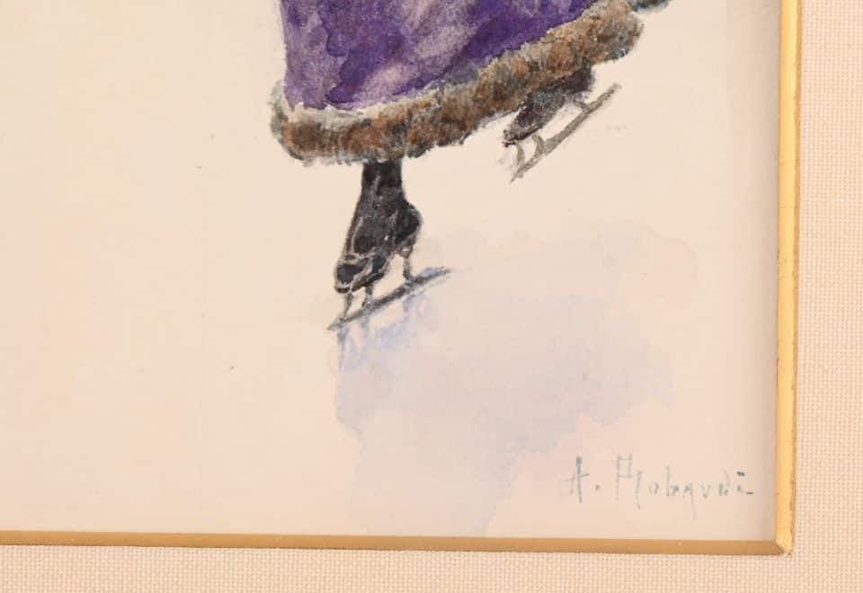 Suite de deux aquerelles signées : » Palais de glace » et » Prête à sortir »