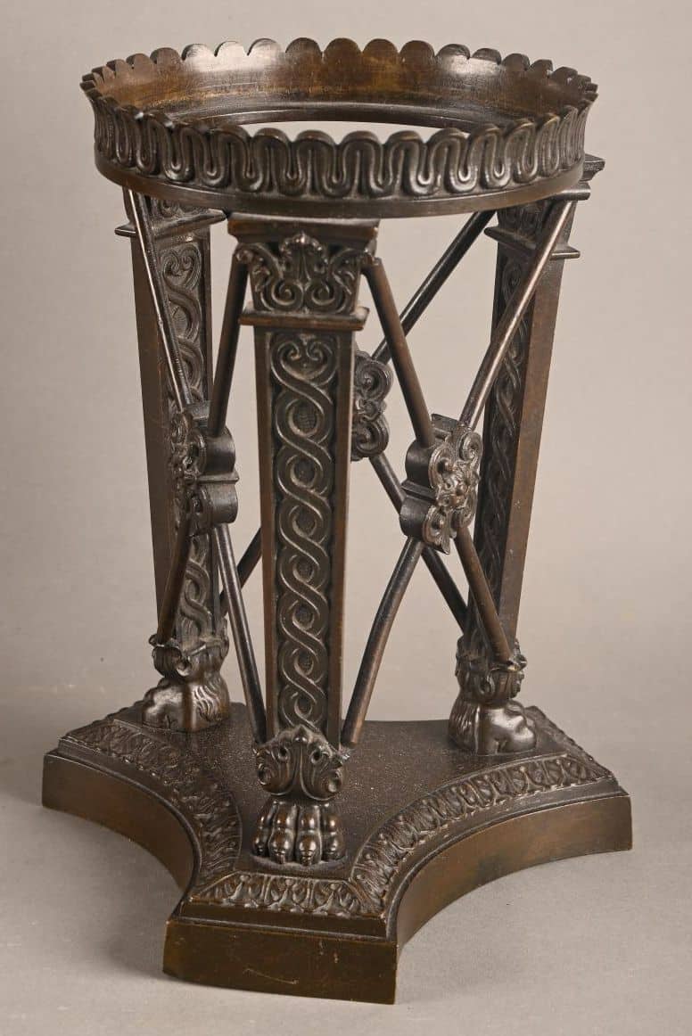 Pied tripode à pieds griffes sur un entablement. Croisillons à fleurs de Lys.