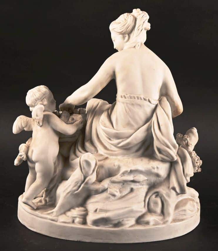 Lot n°125 – Groupe en biscuit  » Muse et Cupidon «