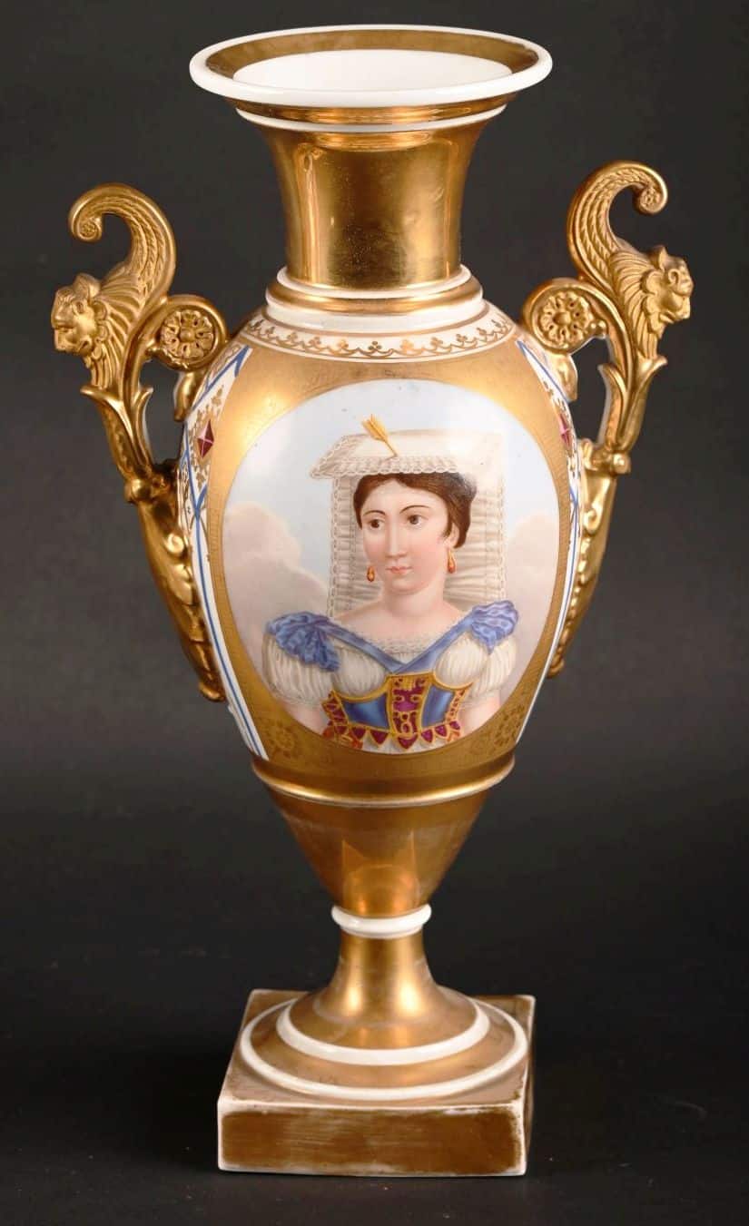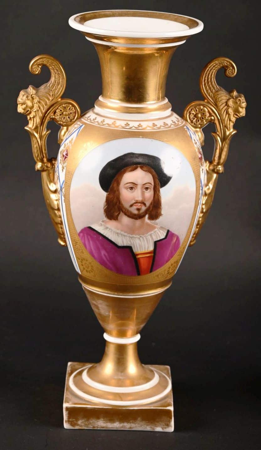 Lot n°131 – Paire de vases en porcelaine de Paris à décor en réserve de personnages à la Troubadour