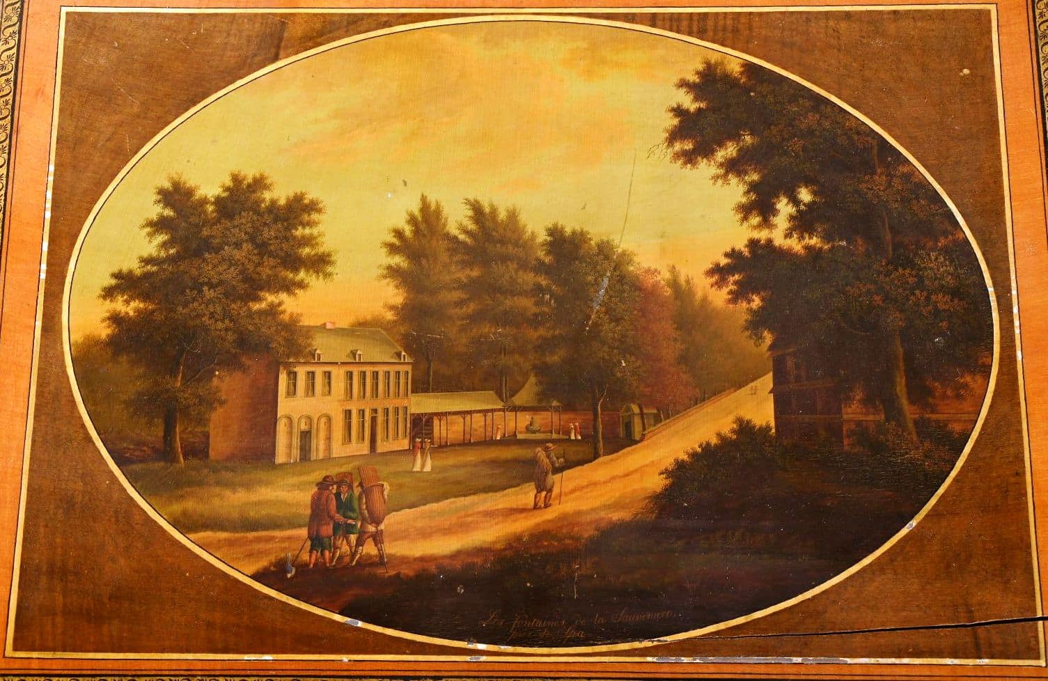 Large et belle boîte de Spa avec vue des environs de Spa. Chaque scène identifiée et localisée.