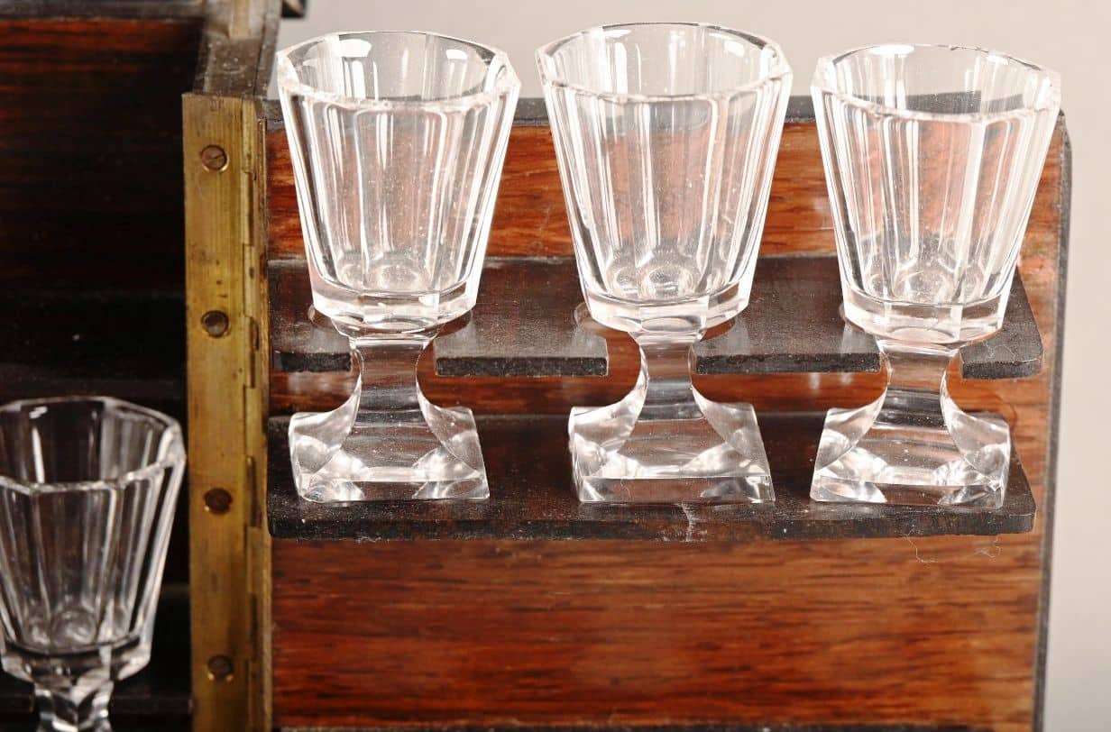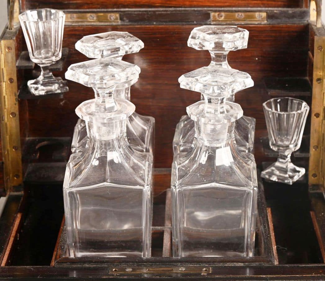 Dim : 25 cm x 31 cm x 22 cm.Dans l’état, manque une série de verre.