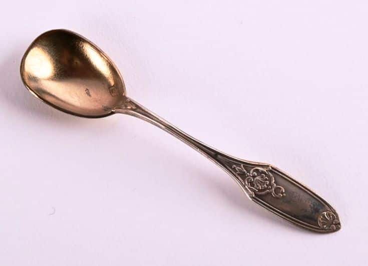 Suite de quatre salières en argent avec verrerie translucide et quatre petites cuillères, poinçons tête de Mercure sur les cuillères